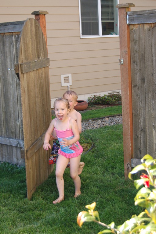 It’s not exactly summer here, but with 78 degrees, it’s close enough for the kids to ask for the sprinklers. So on the sunniest, warmest day so far in 2012, we had showers of the kid-made kind.