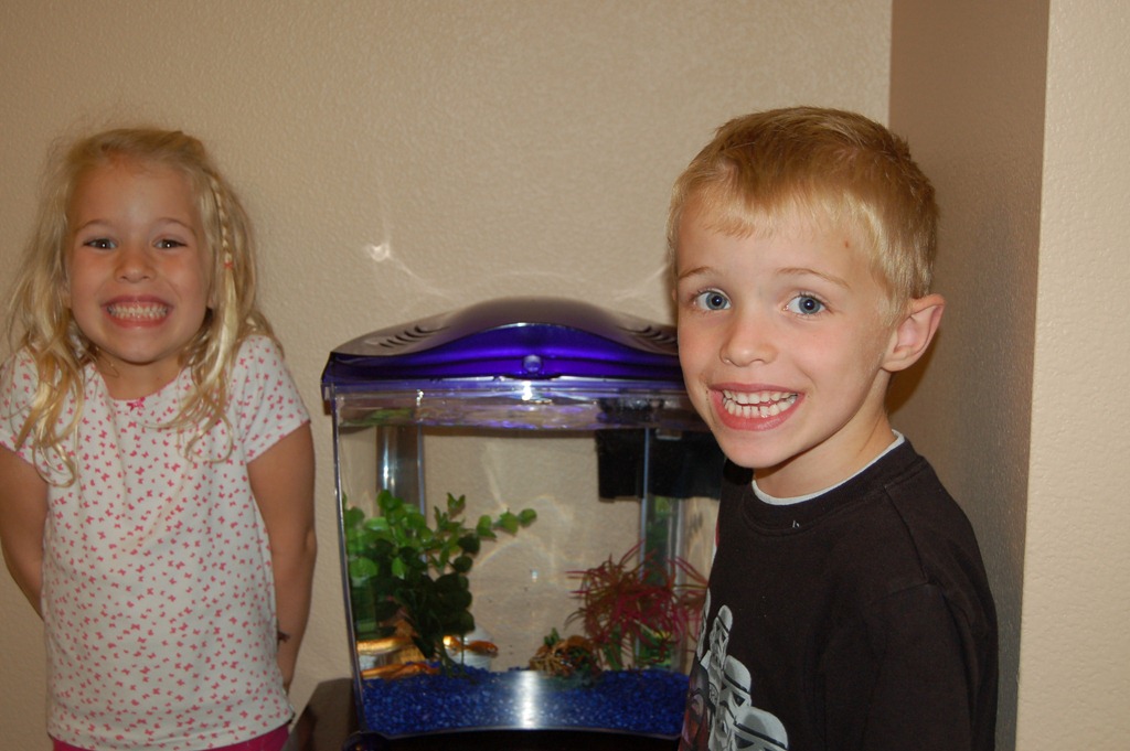 Our kids went to a birthday party today, and came home with 4 goldfish… which are now the first pets in the family.