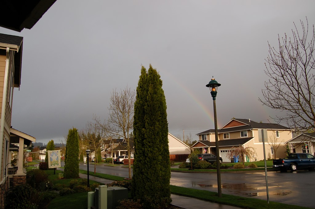 Looked out the window while eating breakfast this morning, and saw a rainbow. So I took a picture—because, you know, that’s how we roll around here. But after taking a picture, I discovered it was actually a DOUBLE-RAINBOW. A double–SUNRISE–rainbow.