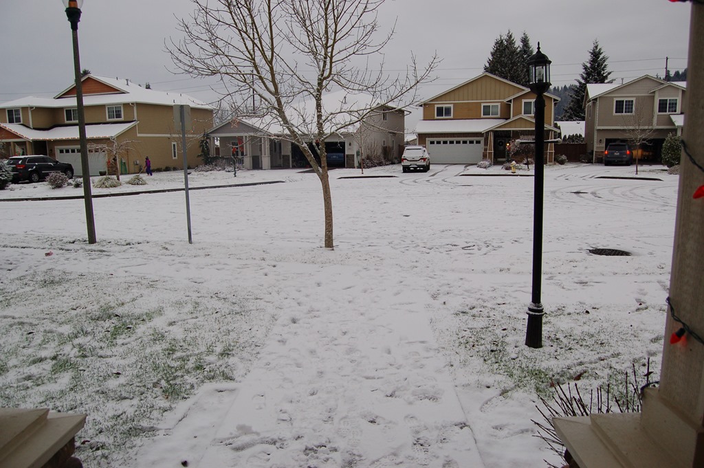 The snow has stopped, and the temps are starting to climb. It’s supposed to rain this afternoon, so this will be all gone later today.